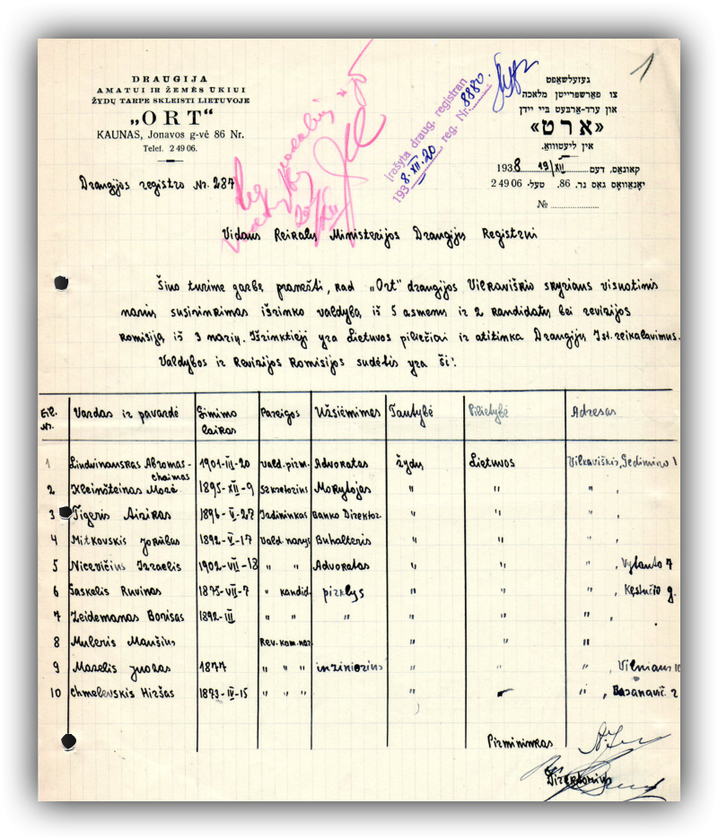 The ORT Vilkaviškis branch, the World ORT Central Committee